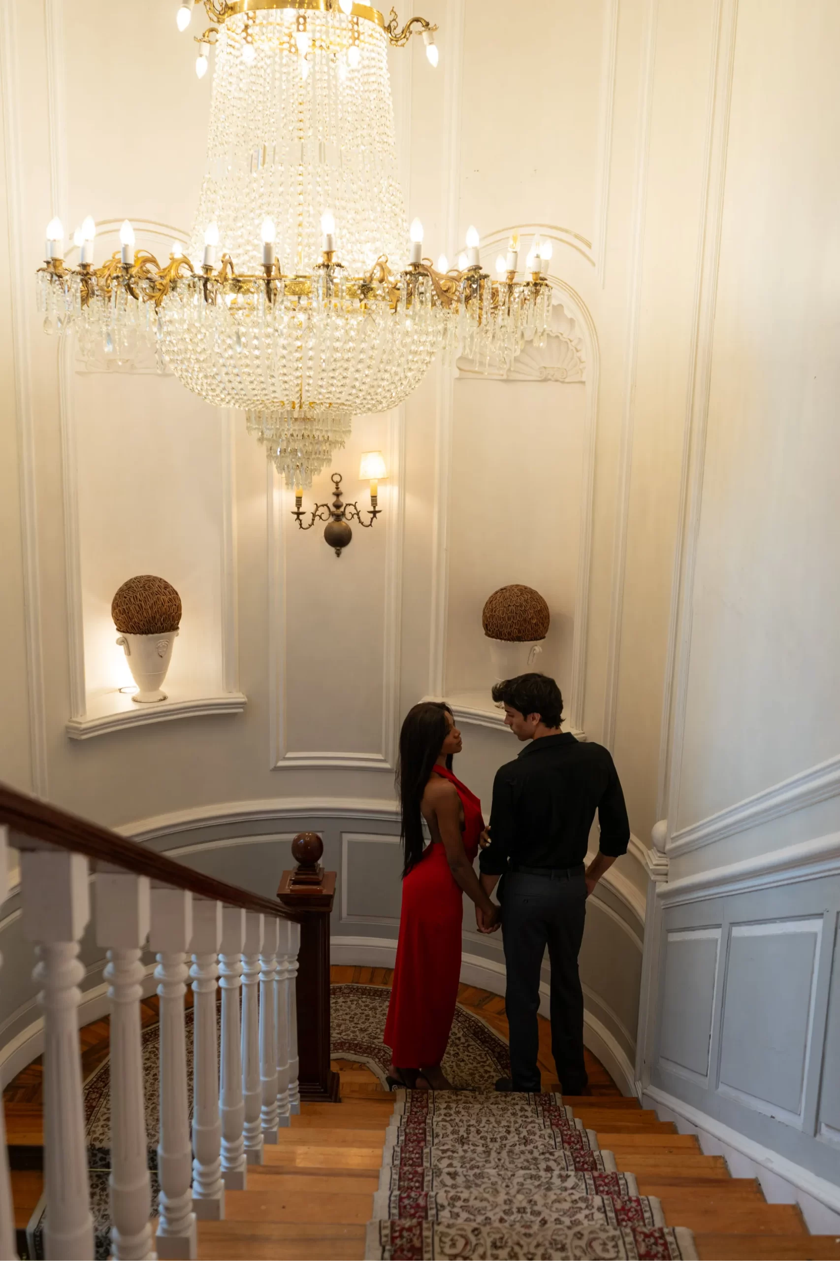 Un salón de estilo francés, paredes pintadas a mano. En el centro, un imponente candelabro. El aroma cálido de la madera de la chimenea, mientras que el suave murmullo del piano de media cola completa la sinfonía de elegancia y romance.